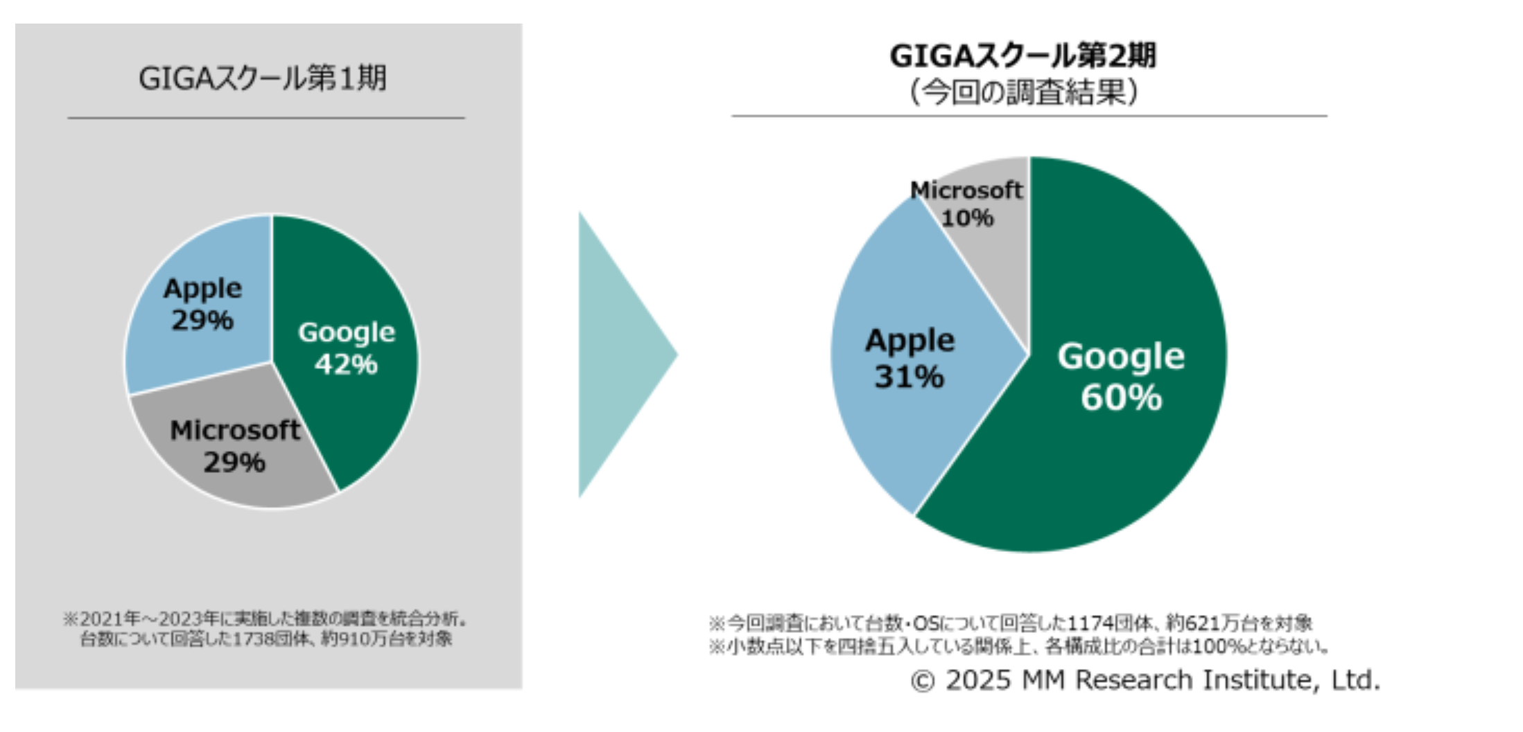 MM総研・GIGA第2期調査(OSシェア、自治体動向)・関連記事 https://www.m2ri.jp/release/detail.html?id=686&utm_source=chatgpt.com