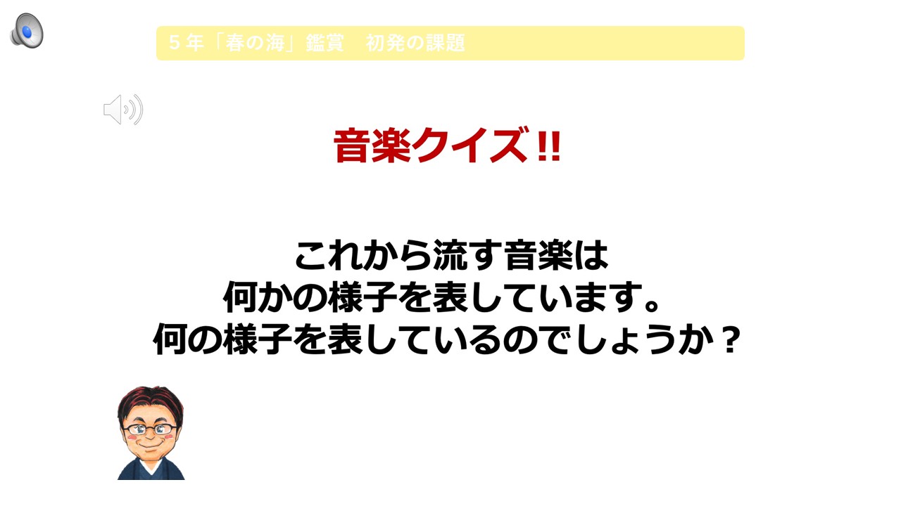 クイズ形式で、退屈な鑑賞を楽しく導入する。