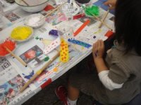 - ペットボトルを使って風車を作りました。色使いも鮮やかな力作がたくさん完成しました。